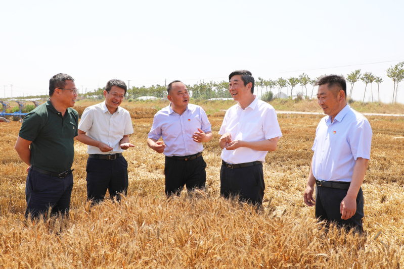 6月12日下午,集團(tuán)公司黨委書記、董事長(zhǎng)魏紅軍到東辛調(diào)研。他強(qiáng)調(diào),要深入扎實(shí)開展學(xué)習(xí)貫徹習(xí)近平新時(shí)代中國(guó)特色社會(huì)主義思想主題教育,把“學(xué)思想、強(qiáng)黨性、重實(shí)踐、建新功”總要求貫穿始終,堅(jiān)持問(wèn)題導(dǎo)向,深化調(diào)查研究,持續(xù)提高發(fā)現(xiàn)問(wèn)題、研究問(wèn)題、解決問(wèn)題的能力,以實(shí)實(shí)在在的工作業(yè)績(jī)檢驗(yàn)主題教育成果。魏紅軍針對(duì)東辛漁光互補(bǔ)項(xiàng)目前期規(guī)劃中可能存在的問(wèn)題,前往灌云洋橋漁光一體光伏發(fā)電項(xiàng)目現(xiàn)場(chǎng)考察,詳細(xì)了解相關(guān)經(jīng)驗(yàn)做法。隨后在東辛小麥制種大縣項(xiàng)目現(xiàn)場(chǎng)聽(tīng)取“三夏”工作情況介紹,并對(duì)東辛“三夏”工作取得階段性勝利表示肯定。魏紅軍強(qiáng)調(diào),要堅(jiān)決抓好糧食安全這件頭等大事,決不能有任何松勁歇腳的思想,牢牢把握主動(dòng)權(quán),確保“三夏”取得全勝。要大力實(shí)施集團(tuán)公司強(qiáng)核戰(zhàn)略和種業(yè)振興行動(dòng),將小麥制種大縣項(xiàng)目打造成東辛的一張名片。邁上新征程,東辛要聚焦影響高質(zhì)量發(fā)展突出問(wèn)題,進(jìn)一步樹立“謀大事、干大事、成大事”的鮮明導(dǎo)向,抓好產(chǎn)業(yè)發(fā)展,強(qiáng)化內(nèi)部管理,提升經(jīng)營(yíng)效益,不斷增強(qiáng)核心競(jìng)爭(zhēng)力,在事關(guān)全局、事關(guān)發(fā)展、事關(guān)長(zhǎng)遠(yuǎn)的研究謀劃、難題破解上取得新進(jìn)展新成效,奮力在墾區(qū)高質(zhì)量發(fā)展和現(xiàn)代化建設(shè)中繼續(xù)當(dāng)好排頭兵,為打造現(xiàn)代農(nóng)業(yè)航母“江蘇