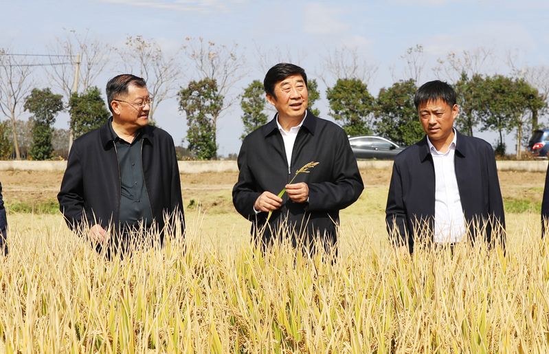 10月30日下午,集團公司黨委副書記、總經理胡兆輝一行到云臺農場公司考察調研,集團公司農業發展部負責人、蘇墾農發股份公司總裁,云臺領導班子成員陪同。胡兆輝一行先后在大汪水稻收割現場、小島曬場烘干線、張圩玉米大豆茬口小麥出苗田塊、省園博園項目、高效農業生產區靈芝種植大棚等地進行實地走訪調研。胡兆輝對云臺“三秋”的工作進展情況表示充分肯定。胡兆輝指出,全場上下要深入學習宣傳貫徹黨的二十大精神,進一步提振精神、鼓足干勁,踔厲奮發、勇毅前行,為全面推進鄉村振興提供堅實支撐。胡兆輝強調,要搶抓晴好天氣,做細做實“三秋”生產準備工作,確保顆粒歸倉,抓牢豐收成果,要把實施好綠色高質高效行動作為“三秋”工作的重要抓手,不誤農時抓好秋種各項工作,全力奪取全年糧食豐產豐收,為明年夏熟夯實生產基礎。省第十二屆園博會是江蘇園林綠化行業層次最高、規模最大、影響最廣的大會。當前,省園博會籌建工作已進入沖刺階段。胡兆輝要求,要進一步增強緊迫感、責任感,加強統籌協調,周密做好籌備工作,科學組織施工,加快推進園區江蘇農墾現代農業科技園項目建設,做好油菜花播種工作,提升景觀質量,充分展示江蘇農墾現代農業水平與良好國企形象