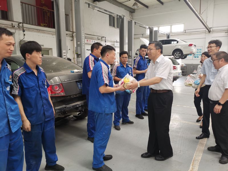 烈日炎炎,熱浪滾滾。8月12日下午,集團工會主席楊義林一行到蘇舜公司上汽大眾4S店(江蘇蘇舜汽車)開展高溫慰問。 楊義林來到蘇汽公司售后維修車間,看望慰問高溫下作業的一線職工,親手將防暑降溫慰問用品送到了職工們手上。楊義林對不畏酷暑、堅守崗位的一線職工表示衷心的感謝,并叮囑他們在高溫天氣下勞作要勞逸結合、保重身體,既要完成工作,也要確保身心健康,時刻注意安全勞作。 隨后,楊義林詳細了解了職工的工作生活情況,并跟大家做了親切的交談。楊義林指出,要堅持“以人為本”的理念,將關愛職工作為凝聚團隊力量、促進企業發展的有效途徑和聚人心、暖人心、穩人心的切實體現,要心系職工,尤其要做好對困難職工的慰問幫扶。對蘇舜公司正在研究制定出臺的《蘇舜集團職工大病互助基金管理辦法》工作,楊義林強調,職工大病互助基金是一項暖人心的工程,一定要把事情做好、做實,規范管理,提高效率,充分發揮好互助基金的作用,要用心用情用力為職工群眾辦實事、做好事、解難事。 集團領導的關心慰問,讓職工們倍感溫馨和鼓舞。高溫仍將延續,但職工們紛紛表示將繼續立足本職、堅守崗位、不忘初心,一絲不茍地干好工作,盡心盡力為客戶提供滿意的服務,