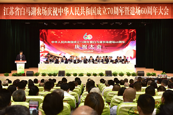 9月23日,在節(jié)日般的喜慶氛圍中,白馬湖農(nóng)場有限公司干部職工代表和特邀嘉賓共450人歡聚一堂召開慶祝大會,共同慶祝中華人民共和國成立70周年暨白