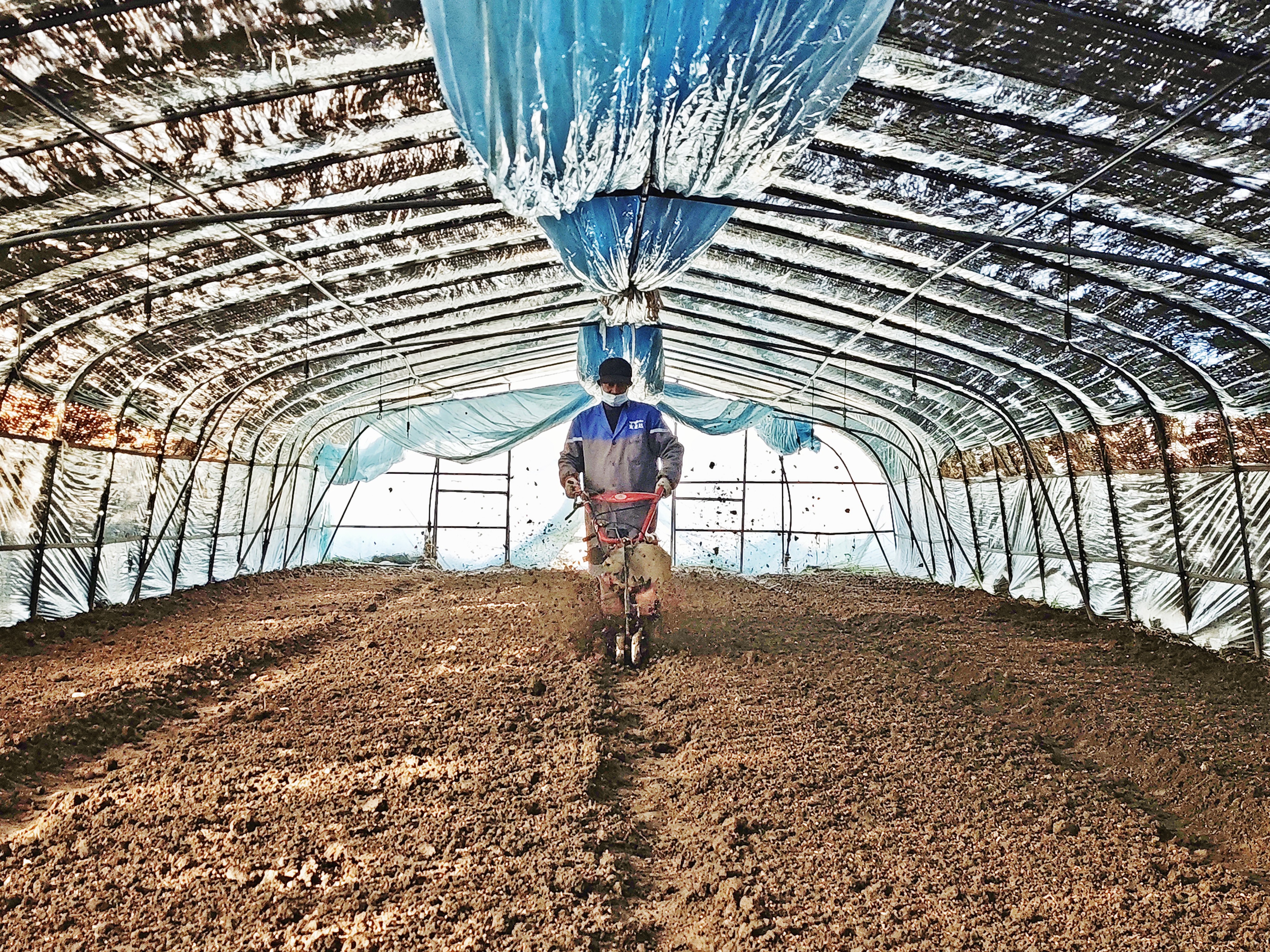 初冬時節,農事不輟。11月27日,淮海農場羊肚菌種植基地正式開啟播種作業,一座座標準化大棚內機械轟鳴、人聲鼎沸,勾勒出一幅“冬種忙、盼豐收”的生動圖景。走進淮海農場羊肚菌種植基地,工人們正嚴格遵循規范作業流程,旋耕粉碎機器來回穿梭,將土地深耕細耙,為菌種生長筑牢松軟基底;菌種自動脫袋破碎機將成塊的菌種均勻研磨成適宜播撒的顆粒狀;工人們均勻撒播菌種,動作嫻熟利落;專用開溝覆土機沿預設軌跡完成開溝覆土作業,各環節銜接緊密、高效推進,為羊肚菌優質高產打下堅實基礎。“今年我們嚴格遵循深耕細作、菌種處理、精準播撒、科學覆土的標準化流程,每個環節都經過實踐的反復論證,確保菌種與土壤充分接觸,為菌絲萌發和后期生長打好基礎。”種植技術員李博邊查看播種質量邊介紹道,“后續將持續強化田間管理,全程做好溫濕度調控、病蟲害綠色防控等工作,實時監測羊肚菌生長狀態,保障菌絲萌發、摧菇等關鍵環節。”今年以來,淮海農場羊肚菌產業發展按下“加速鍵”,實現規模與質量的雙重躍升。農場種植規模較去年實現翻倍擴容,從去年的50畝50座大棚,到今年擴大建設至100多畝種植區,共計167座標準化種植大棚。其中,前期50畝羊肚菌播種