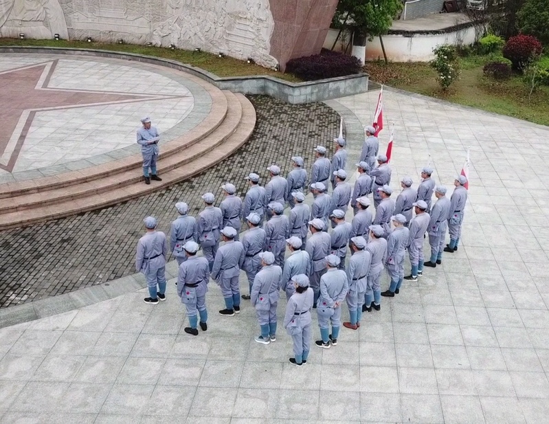 學員們在教官的帶領下,身著整潔的服裝,邁著整齊的步伐,來到了古田會議舊址,他們面對黨旗,跟隨著農場公司黨委委員李文忠一起,莊嚴地舉手右手,重溫了入黨誓詞。隨后大家在解說員的解說下,參觀了古田會議舊址。在毛主席紀念園,學員們瞻仰了毛主席雕像,向敬愛的毛主席敬獻花籃,并一起向毛主席雕像三鞠躬,深切緬懷老一輩革命家的豐功偉績。