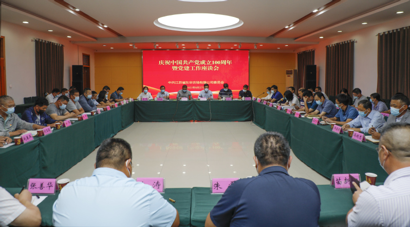 農場公司黨委書記韓中書在講話中表示,今年是中國共產黨成立100周年,隆重熱烈慶祝建黨百年華誕,是全面貫徹落實習近平新時代中國特色社會主義思想的重要舉措,是黨和國家政治生活中的大事。根據黨史學習教育要求及年度黨建工作安排,東辛召開慶祝中國共產黨成立100周年暨黨建工作座談會,主要目的是進一步學習領會習近平總書記“七一”重要講話精神,推動黨史學習教育學在深處、干在實處,同時總結交流黨建工作經驗,提出既有思想理論高度,又有實踐指導意義的思路舉措。他指出:今年以來,在全場各級黨組織和廣大黨員干部的共同努力下,東辛各項事業都取得了長足進步,上半年農場公司和農發東辛分公司共計實現國有營業收入7.31億元,同比增長20.83%;實現國有利潤1.57億元,同比增長14.82%。
