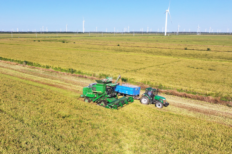 近日,隨著連日陰雨天氣的結束,蘇墾農發淮海分公司各生產區迅速轉入搶收狀態,一臺臺滿載著希望的收割機轟鳴著駛入稻田,將沉甸甸的稻穗盡數“攬入懷中”。